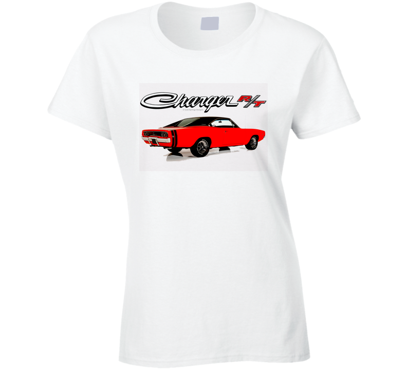 68 Charger Rt Back View Muscle Car 440 Hemi Six Pack Classic Vintage Gift Ladies T Shirt